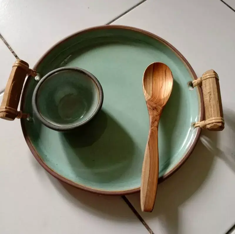 This set is even more beautiful in person! The quality of the ceramic and the stunning grain of the wooden spoon are amazing. The free wooden coaster was such a thoughtful bonus and a perfect match. I'm so happy with this purchase and would highly recommend Munzterania Pottery to anyone looking for unique, high-quality pieces.